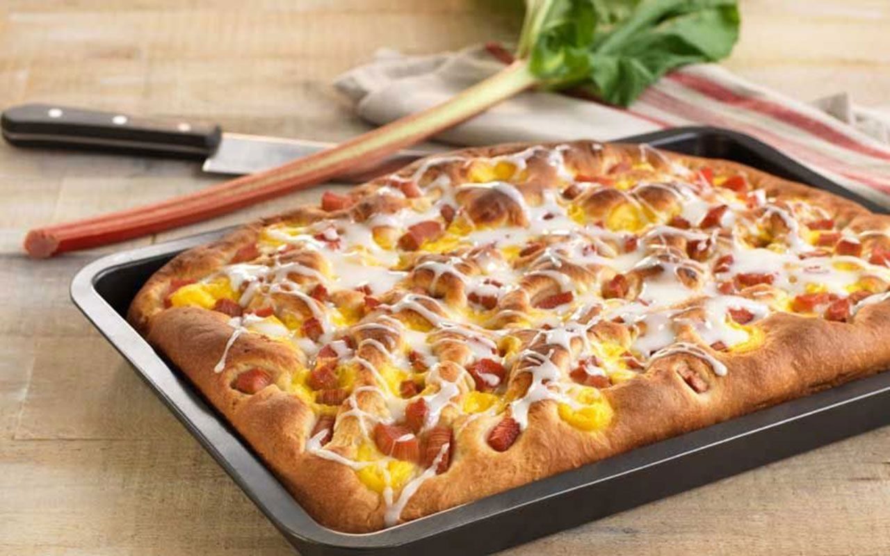 Gjærbakst og langpannekake i ett! Denne kaken blir garantert en suksess på kakebordet.
