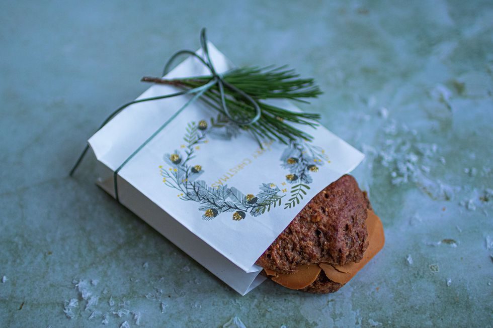– Lekker innpakning er det første man ser når man får en gave. Det er lite som skal til for å gjøre det lille ekstra. Jeg har tenkt nøye gjennom hvem som får brødet, om det er typen, svigermor eller den gravide venninnen, sier Anette Fjelleng Hansen. Hun er matfaglig rådgiver og visuelt ansvarlig for foto i MatPrat.