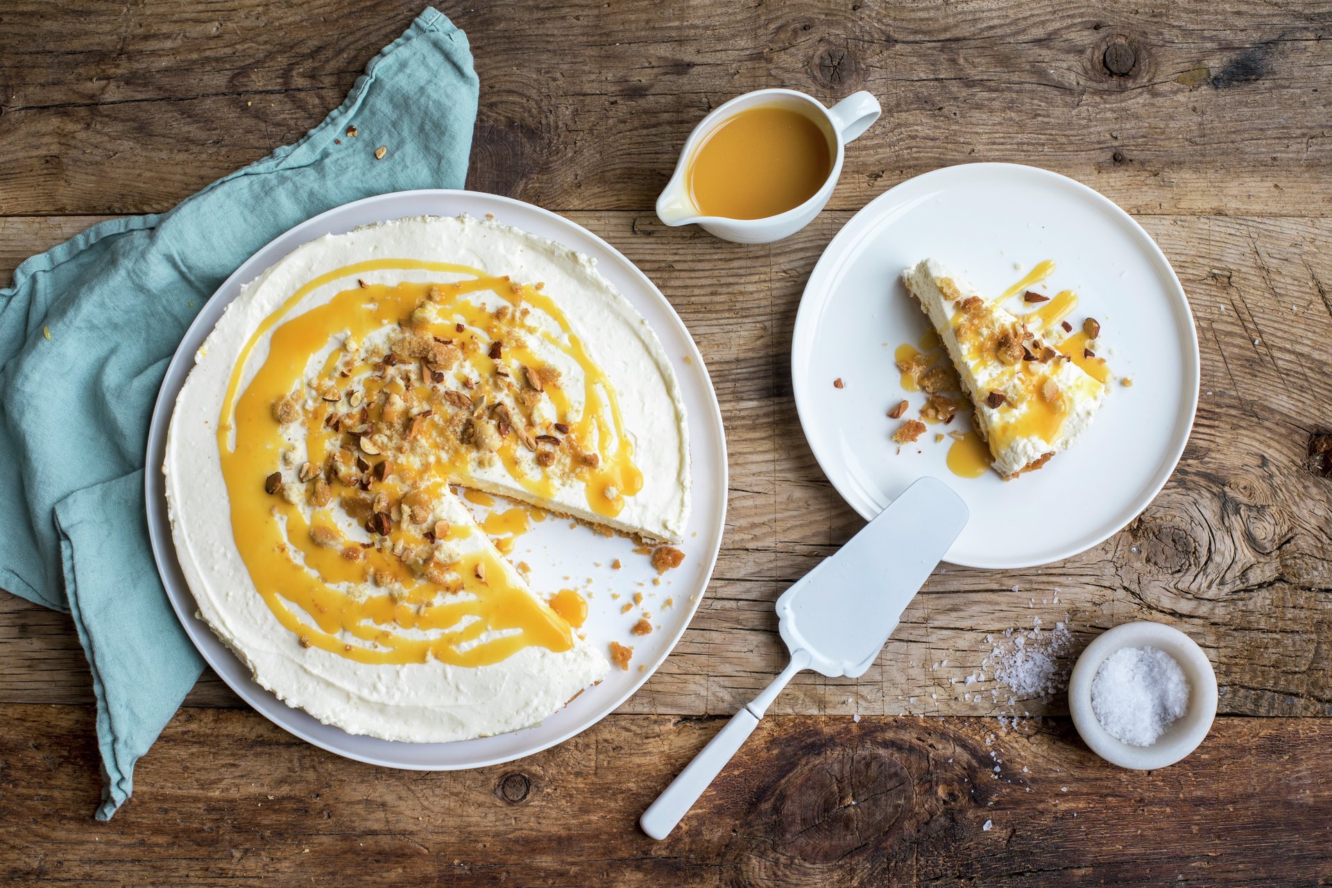 Bunnen til ostekaker lages ofte på kjeks eller av rugbrødsmuler som i kaken på bildet her. Bruker du julekaker får ostekaken en ekstra smak av jul, slik som denne ostekaken under med salt karamell.