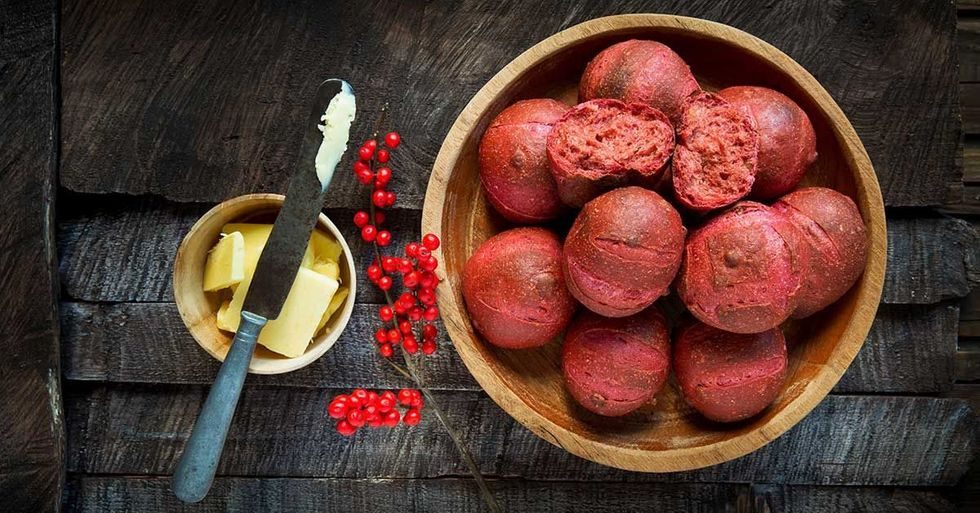 Prøv kuvertbrød med rødbetsaft som nytt tilbehør til svineribba. Både utseende og ikke minst smaken er god. Et kuvertbrød gjør dessuten det relativt feite svinemåltidet både bedre og mer smakfullt.