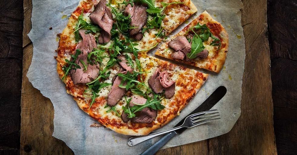 Lag en juleinspirert pizza. Reinsdyrstek hører julen til, og en pizza med rester er fortreffelig julemat i romjula.