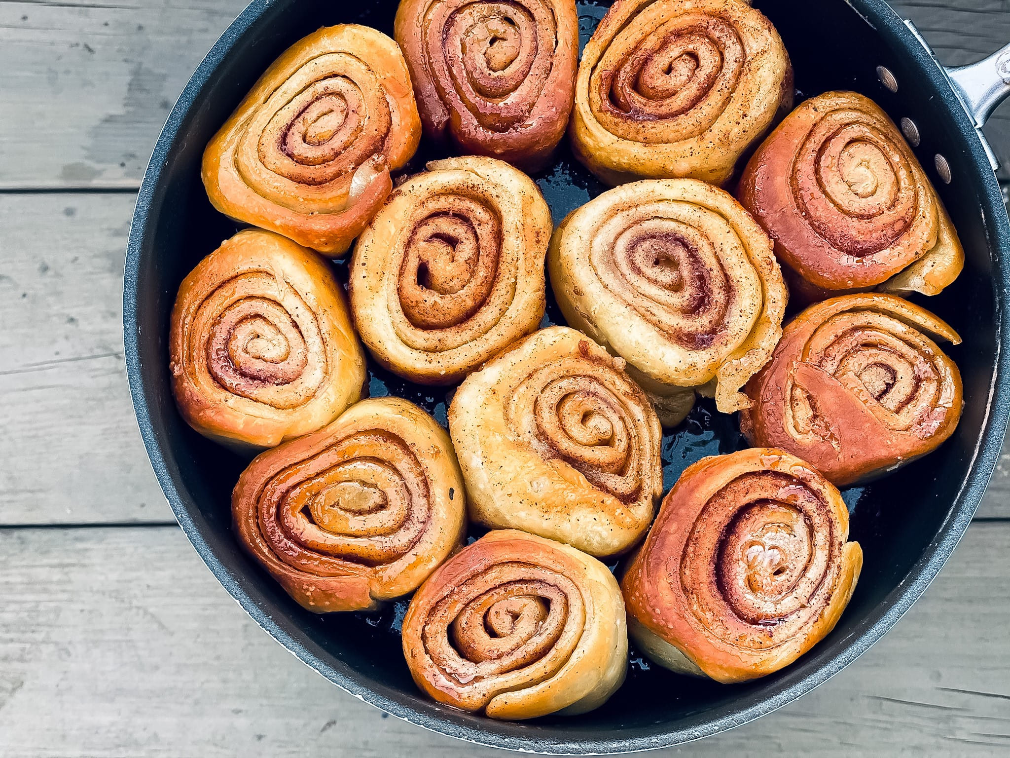 Disse kanelbollene lager du enkelt! Rull ut en ferdig pizzabunn, ha på fyll og stek godsaken på primus eller i en stekepanne på bålet. Perfekt turkos!