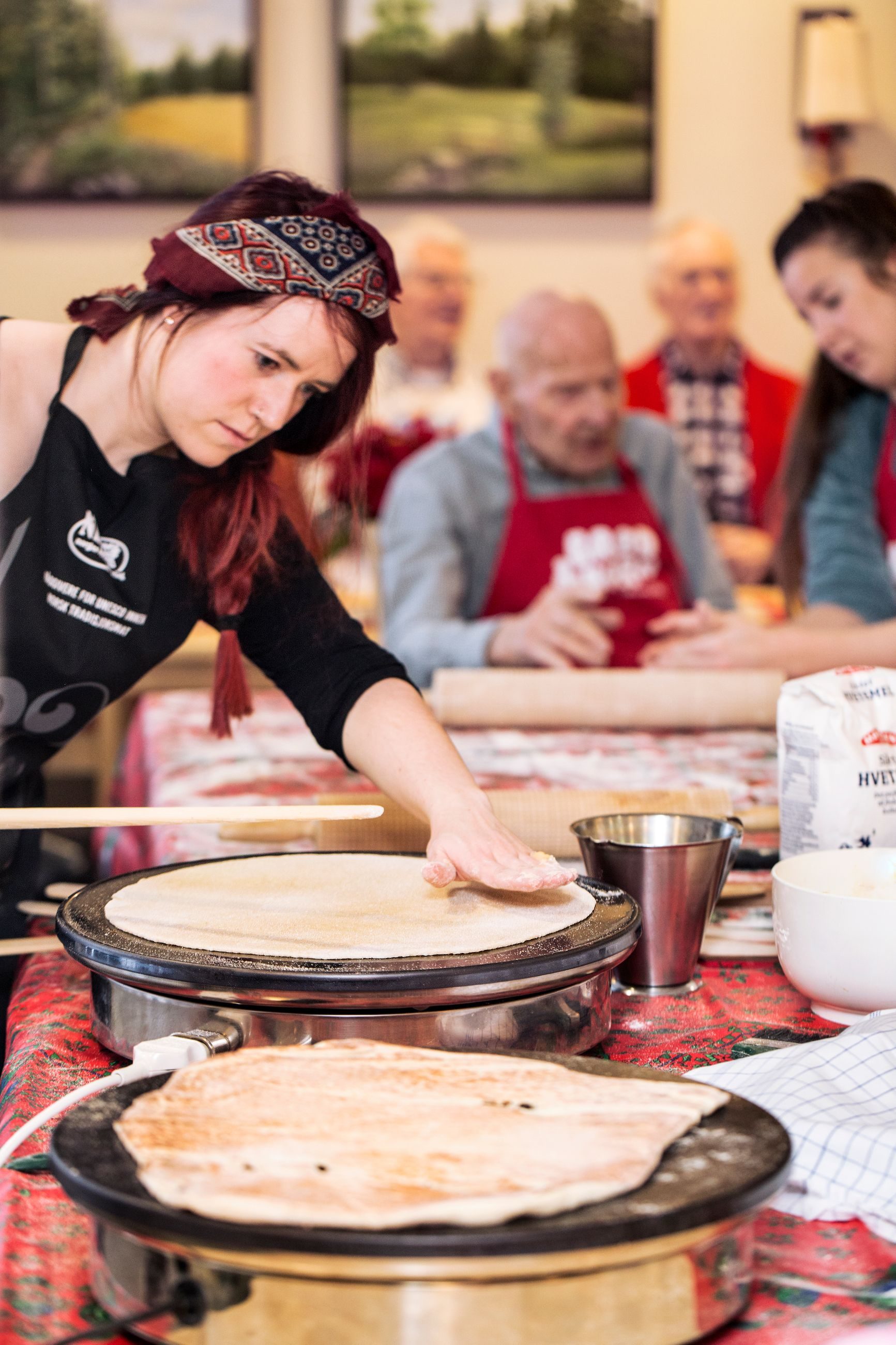 – Det er meningsfullt og hyggelig å kunne besøke beboerne her på hjemmet, spesielt nå i førjulstiden. Vi ser at det bringer glede, aktiviserer og bringer folk sammen. Tradisjonsmat fungerer svært godt til dette formålet fordi eldre har sterke minner knyttet til sin barndomsmat, sier de to.