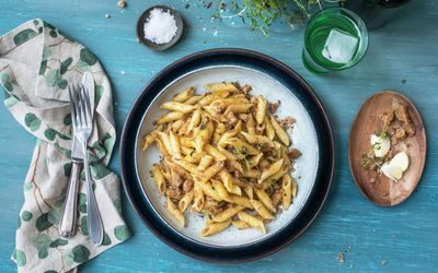 Vegetarisk middag kan være utrolig godt. Prøv hjemmelaget pasta med fullkorn servert med en rask, enkel og spicy tomat-bønne-saus. Å lage pastaen selv er enklere enn du tror!