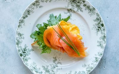 Klassiske snitter med eggerøre og laks, og litt grønt til pynt.